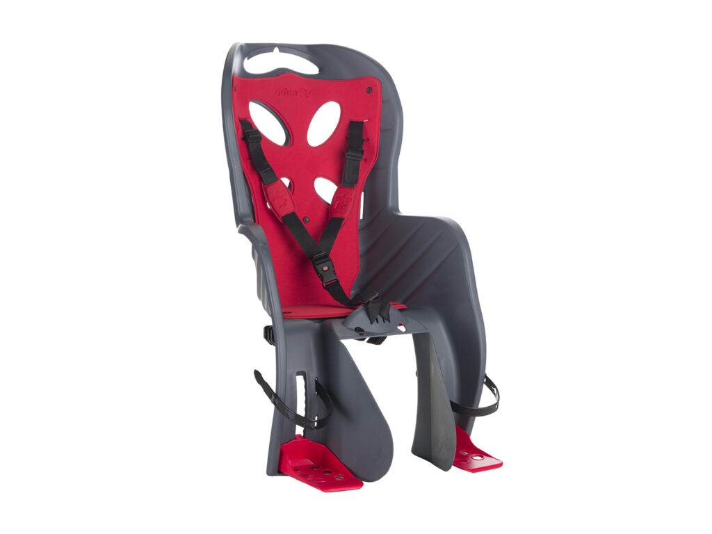 Rear rack child seats are a practical and safe alternative for carrying older children (usually up to 22 kg) on your bike. They attach securely to the rear rack and come equipped with a backrest, footrests, and safety harnesses. They allow your child to sit comfortably and enjoy the bike ride.